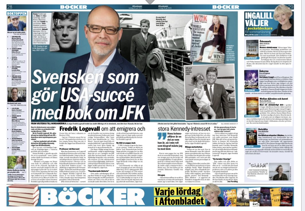 Utöver det har Logevall skrivit en otroligt grundlig och genomarbetad biografi om Kennedy (den första av två delar släpptes i fjol). Min intervju med en mycket fascinerande ex-Västeråsare går att läsa i dagens Aftonbladet: